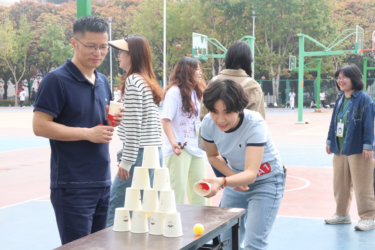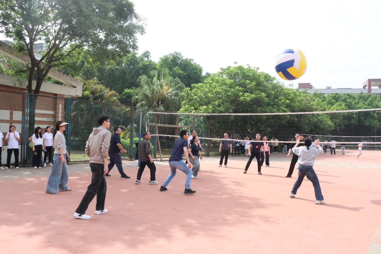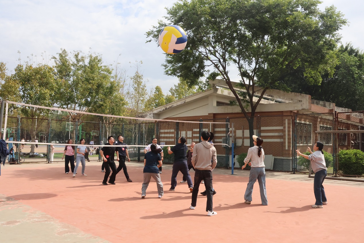 压轴项目巨型排球赛将活动推向高潮。直径近两米的充气球在教职工们的默契配合下腾空跃起,或轻盈传递,或奋力扣击。学者们沉着冷静的战术布局与团队协作的激情碰撞,为赛场增添一抹智慧与趣味并存的亮色。