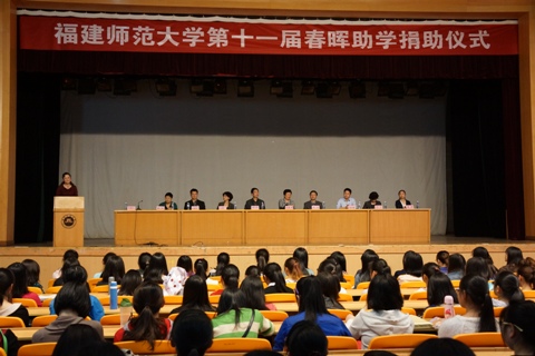 3月26日下午,我校在旗山校区青春剧场举行第十一届“春晖助学”捐助仪式。福州市总工会直属工会主席尤山、女工委主任郑琦,福建中移通信工程技术有限公司综合办公室主任金忠辉,我校纪委书记许歌平,校工会相关负责人,校女工委全体委员,各部门工会女工委员和全体受助学生共160多人参加了仪式。本届“春晖助学”共有127位同学每人获得800元的资助。
