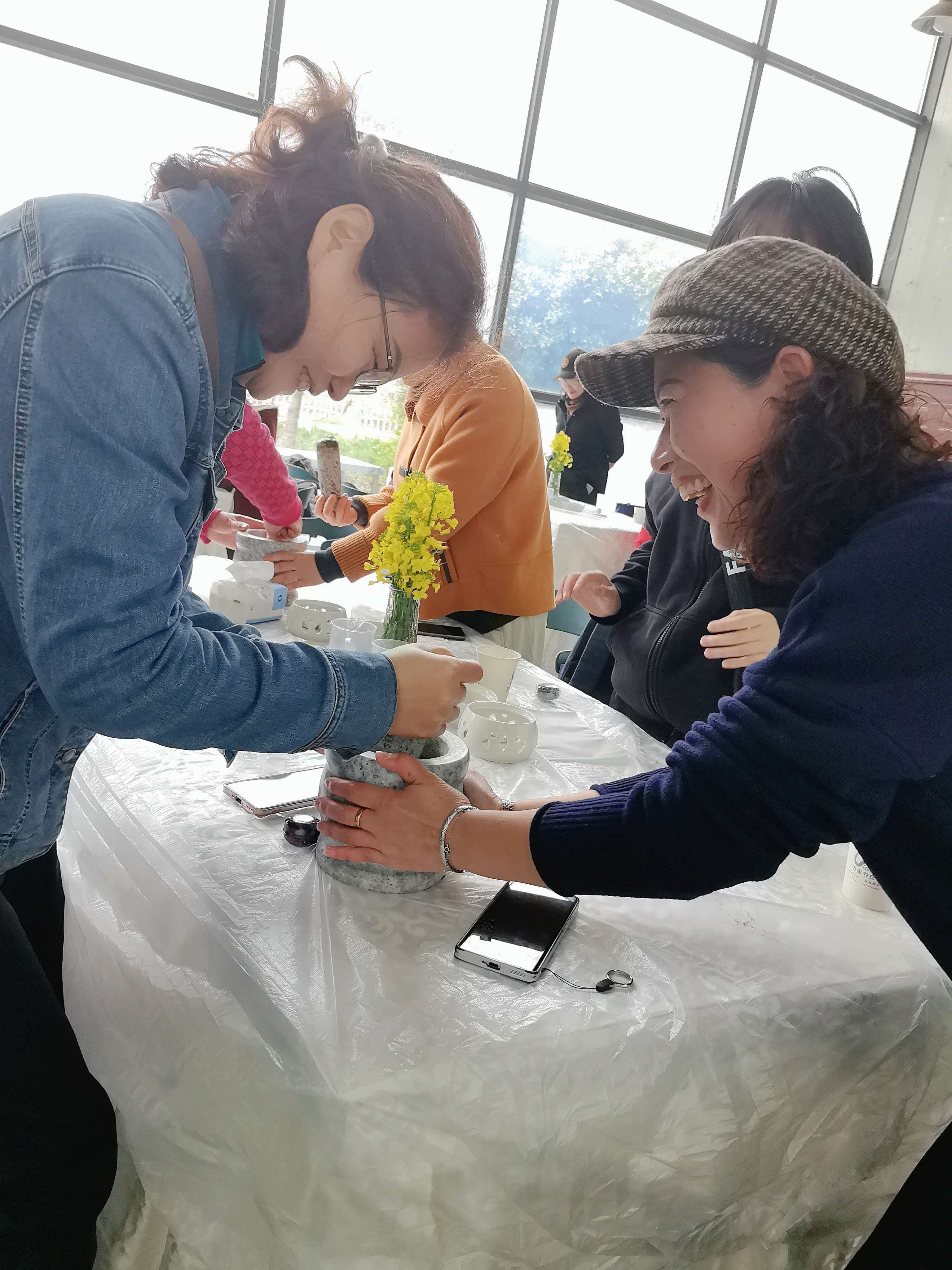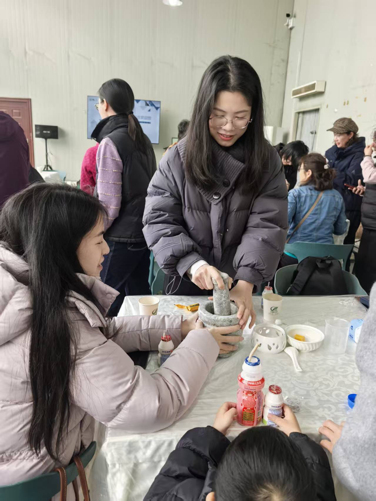 活动伊始,女教工们在农庄老师的指导下,亲手制作天然艾草膏。从称量蜂蜡、浸泡艾草油,到加热搅拌、灌装入盒,每一个步骤都充满了仪式感。当一瓶瓶亲手制作的艾草膏成型时,淡淡的草药香弥漫全场,大家脸上洋溢着满足的笑容。这份来自指尖的温暖,不仅舒缓了平日工作的疲惫,更让大家在慢工细活中体会到了匠心之美。